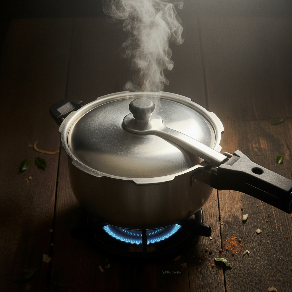 Add the marinated mutton to the cooker. Mix well with the onions and cook for 2-3 minutes. Add a little water if needed, then close the pressure cooker. Cook for 5-6 whistles on medium flame until the mutton is tender.