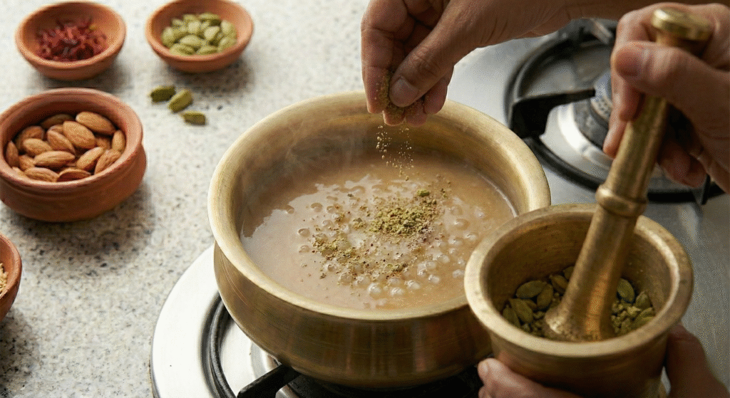 - 🌿 Cardamom pods – 4-5, freshly pounded